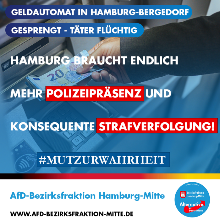 Geldautomat in Hamburg-Bergedorfgesprengt – Täter flüchtig