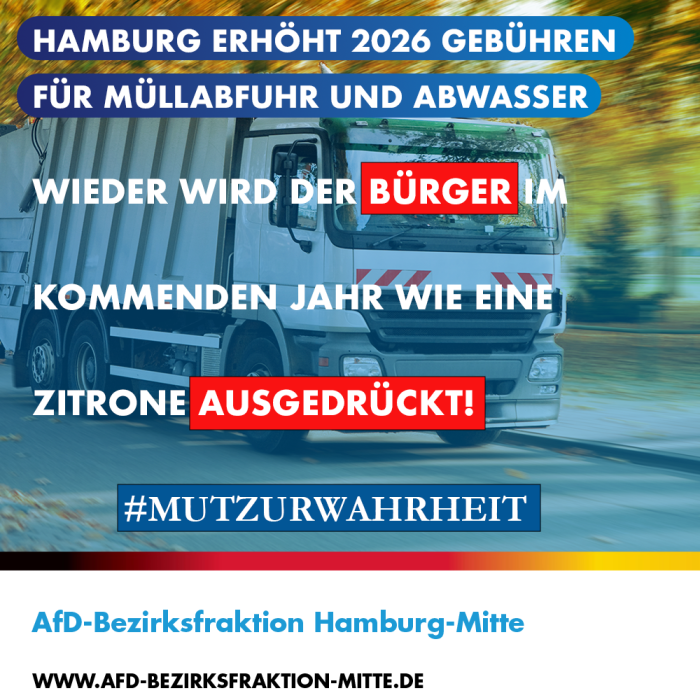 Hamburg erhöht 2026 Gebühren für Müllabfuhr und Abwasser